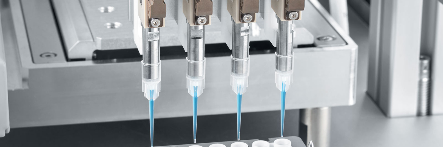 The automated pipetting system, consisting of the pipetting head DHOE from Festo and the disposable syringe ejector DHAO, can accurately dispense volumes in the range of 10 µl.
