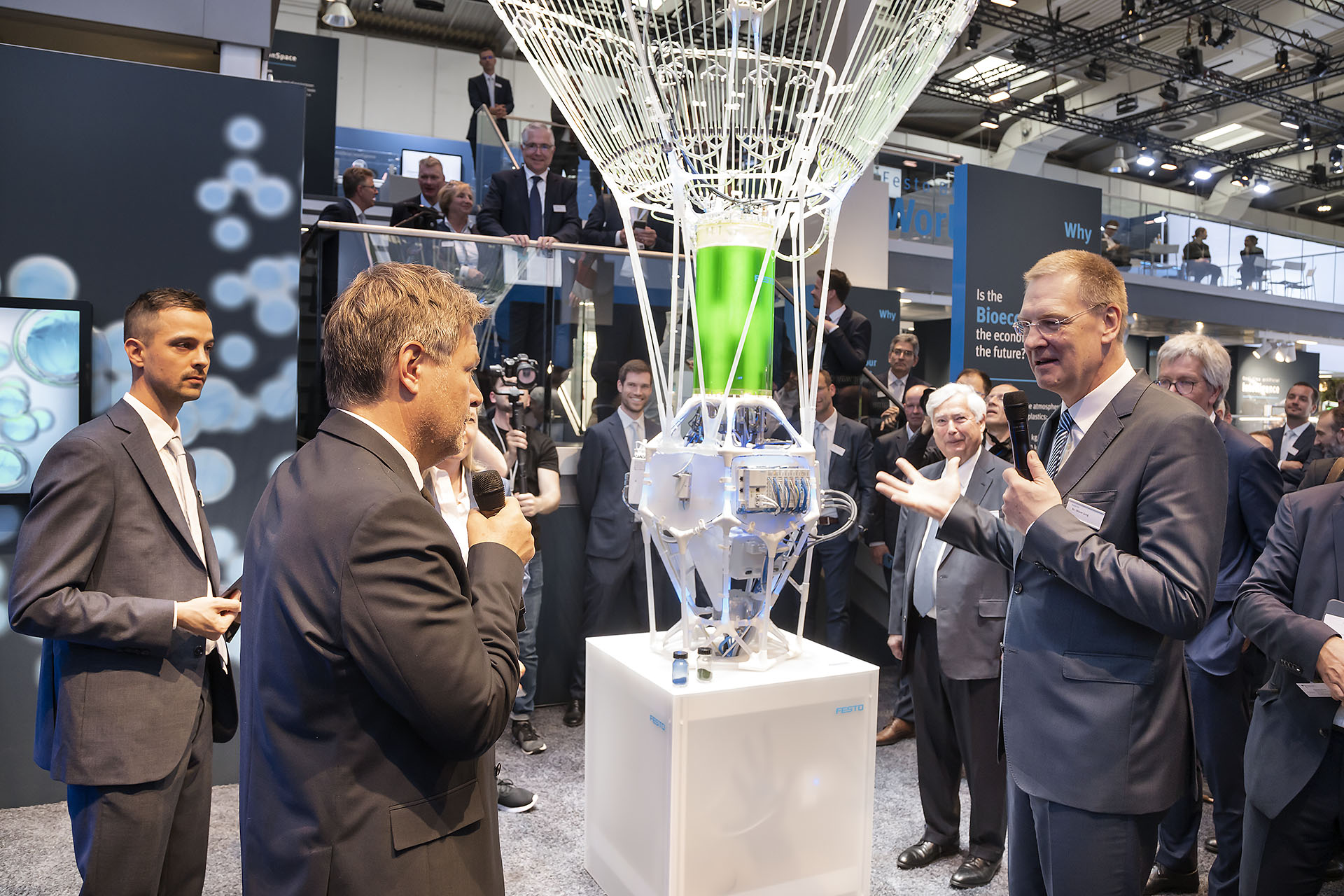 Dr. Robert Habeck informiert sich zur automatisierten Kultivierung von Biomasse