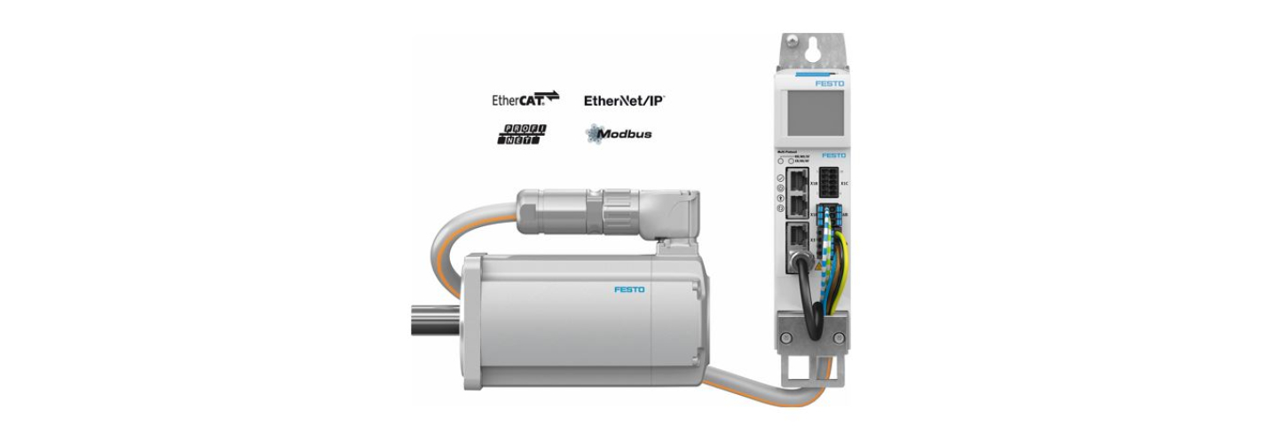 Kommunikation ist heute das A und O. Der kompaktbauende Servoregler zeigt sich dabei äußerst flexibel. Er eignet sich für unterschiedliche Ethernet-basierte Bussysteme und lässt sich lückenlos in die Systemumgebung der Steuerungen verschiedener Hersteller integrieren (zum Beispiel Siemens, Rockwell, Beckhoff u.v.a.). Die erforderlichen, steuerungsspezifischen Gerätebeschreibungsdateien und Funktionsbausteine dafür sind inklusive. Bei der Variante MP mit Multiprotokoll kann das gewünschte Busprotokoll mit der Software Festo Automation Suite oder direkt am Servoantriebsregler einfach ausgewählt werden. Modbus TCP ist als zusätzliches Protokoll bei allen Ethernet/IP Geräten verfügbar.